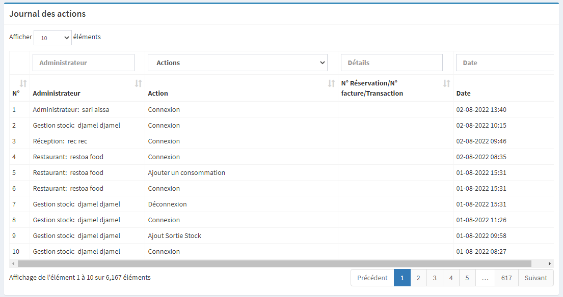 La liste des utilisateurs vous permet de parcourir les informations de tous les utilisateurs du PMS, de les modifier et de les supprimer.