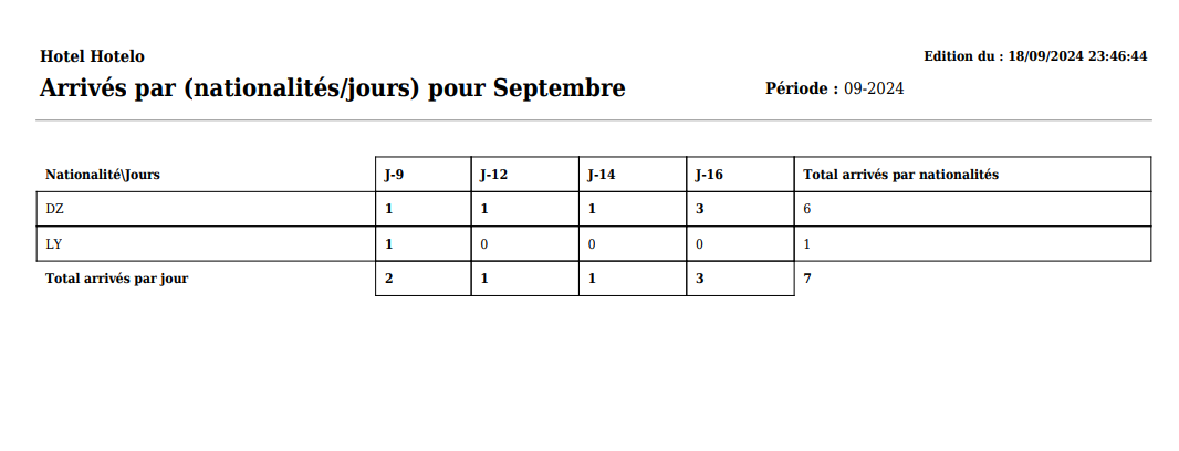 Ce rapport est disponible seulement si le receptioniste n'a pas un point de vent