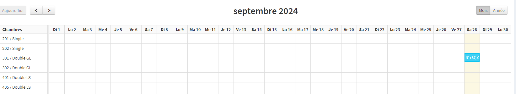 Dans le tableau de bord du réceptionniste, il y a une vue générale sur les informations importantes et des raccourcis nécessaires pour mieu gérer les réservations et les occupations dans l'hôtel.