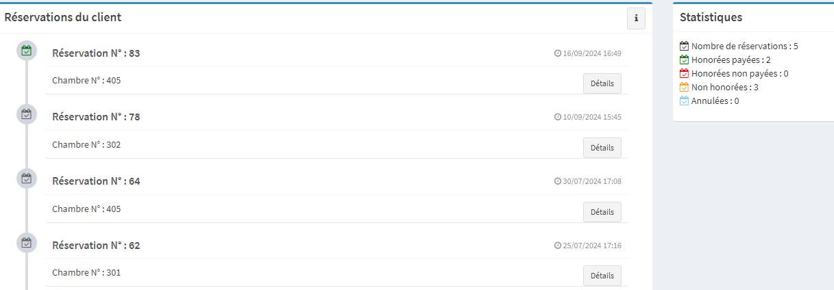 PS: La suppression des clients se fait uniquement par le chef réceptioniste ou l'administrateur.