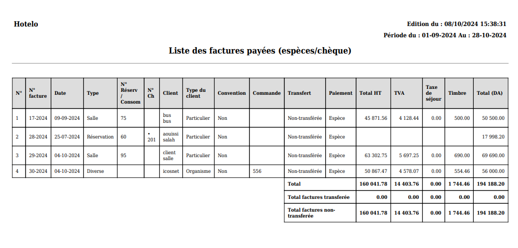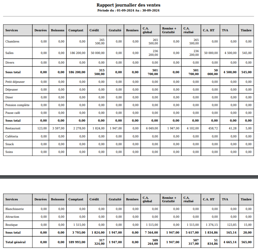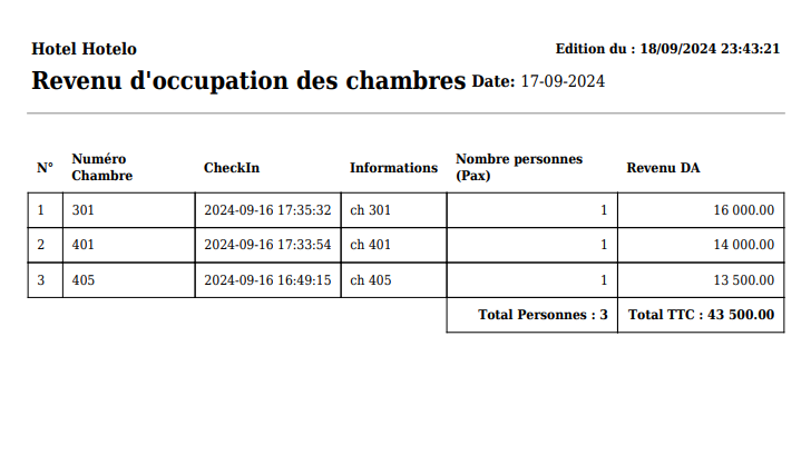 Ce rapport est disponible seulement si le receptioniste n'a pas un point de vent
